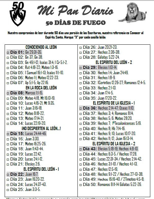 50 Días de Fuego “El Rugir del León”, es un movimiento de renovación, crecimiento, oración, enseñanza, altar familiar, creciendo en nuestra identidad como iglesia, por la Obra de Cristo en la Cruz.